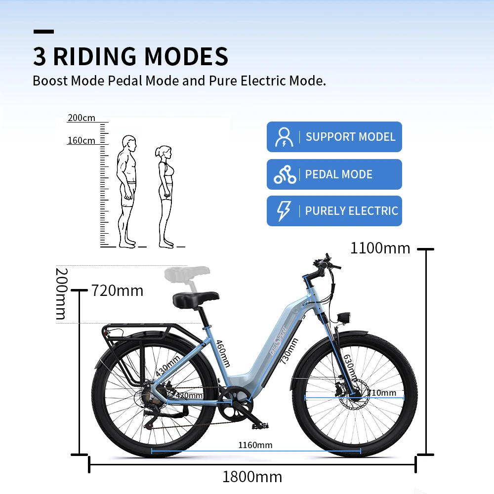 Suspension | Aluminium Axelled Framgaffel (Icke-justerbar) | Mode | Pedal Assistans-läge, Körningsläge, Rent elektriskt läge |
