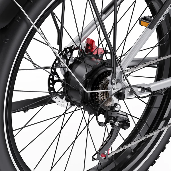 26 x 4.0” fat tires för bättre grepp på grus, snö och ojämn väg