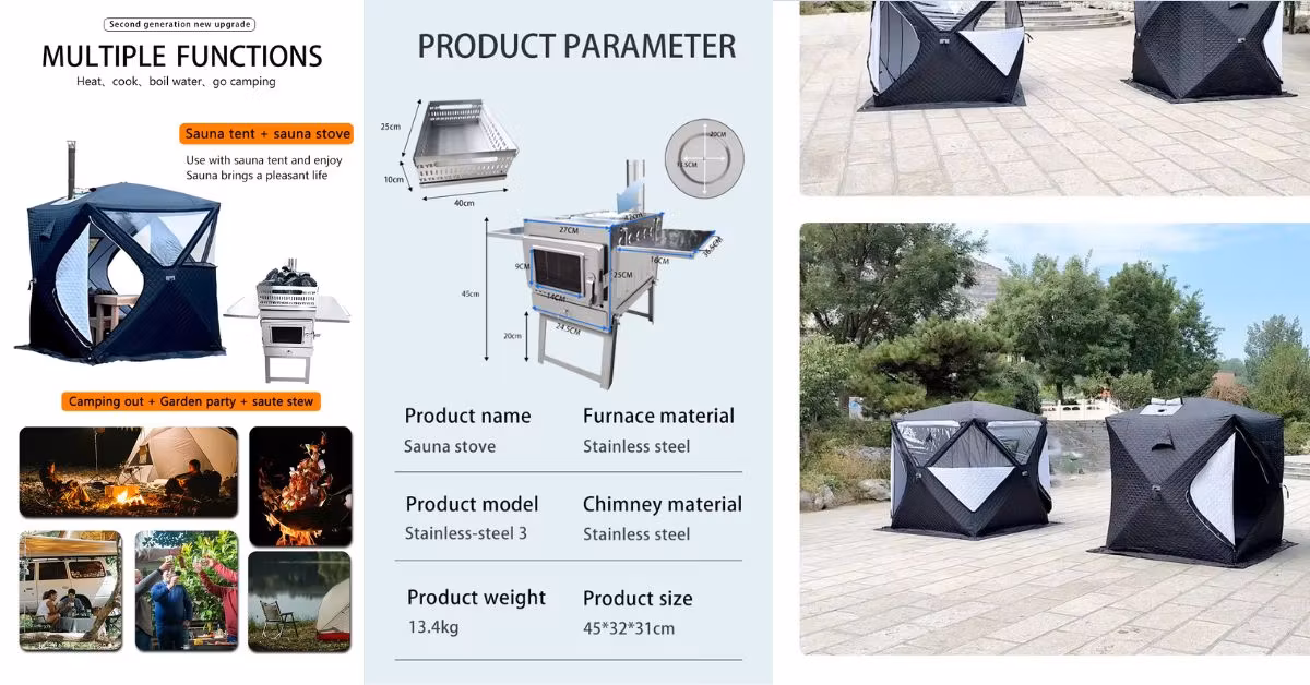 Denna kraftfulla och portabla kamin är designad för användning i bastutält – men fungerar även utmärkt för camping, matlagning eller värme vid kalla uteaktiviteter.
