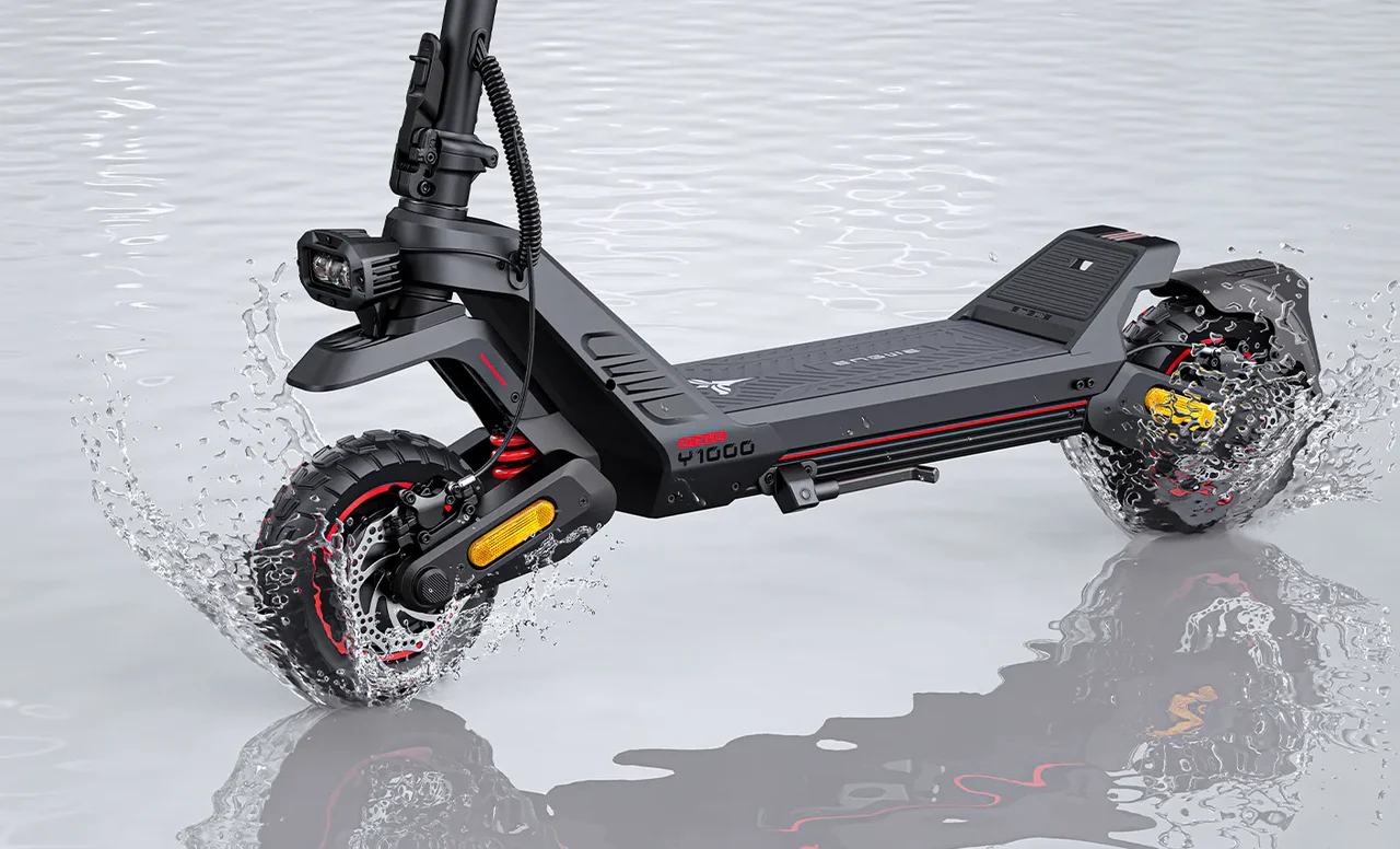 NYA ENGWE Y1000 är en kraftfull elscooter byggd för både äventyr och vardag. Med dubbla motorer, avancerad fjädring och smart teknik levererar den en imponerande kombination av kraft, räckvidd och komfort – perfekt för både stadskörning och tuffare underlag.