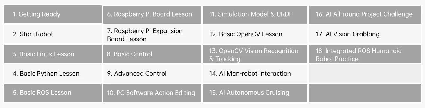 AiNex levereras med omfattande utbildningsmaterial och tutorials.