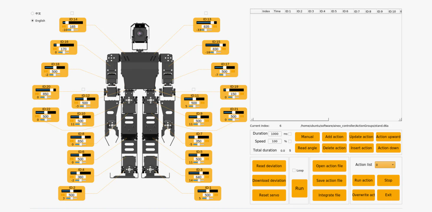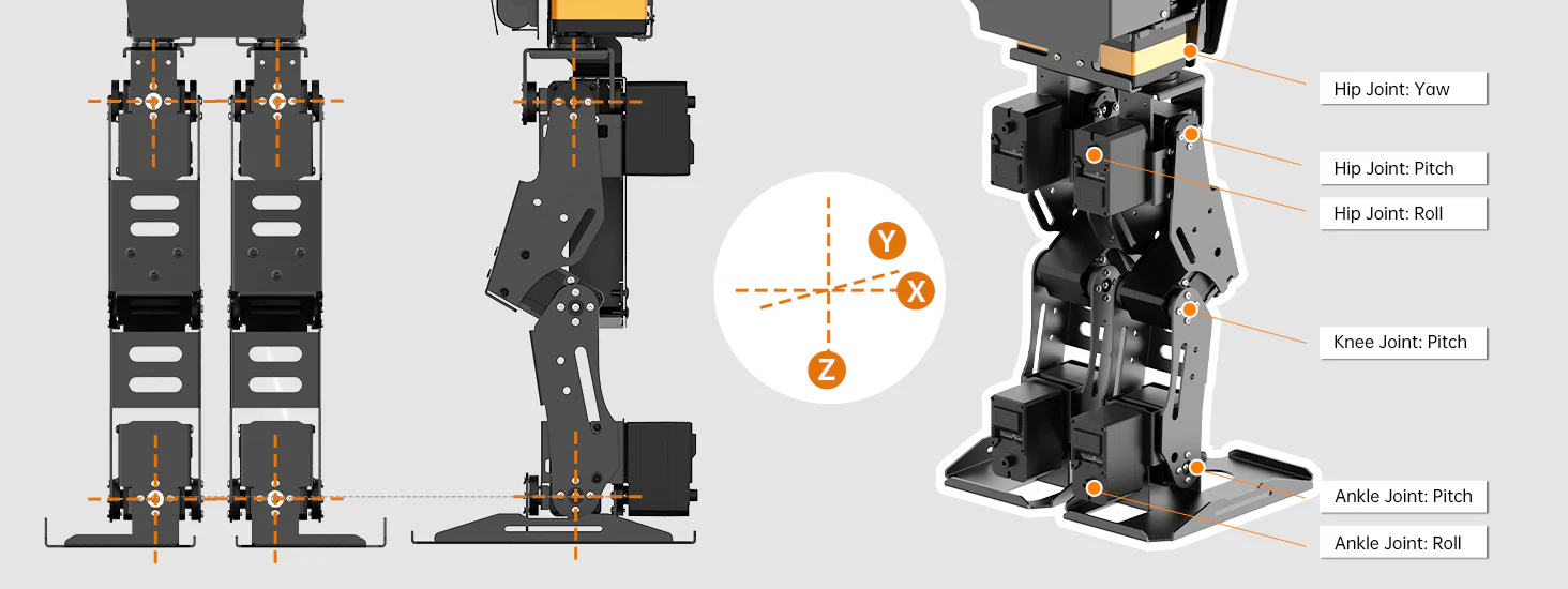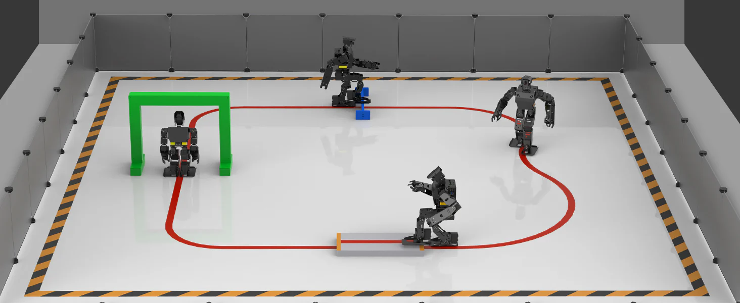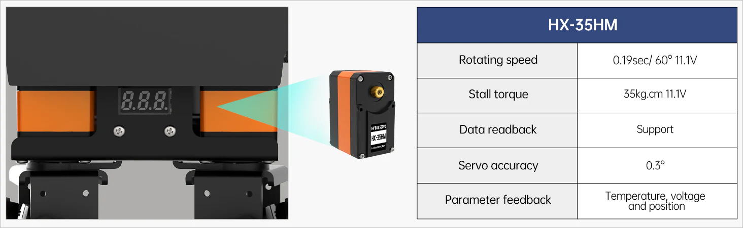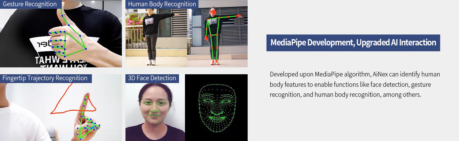 Med 24 rörelseaxlar (DOF) och intelligenta servomotorer kan AiNex utföra realistiska rörelser, gå, vända, plocka upp föremål och interagera med sin omgivning.