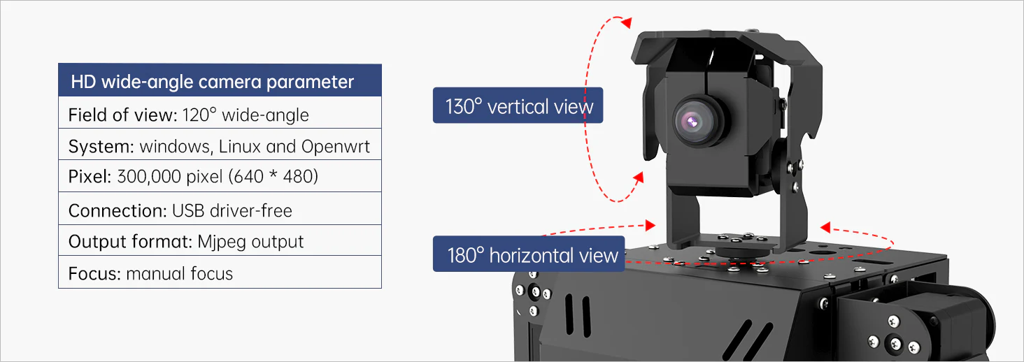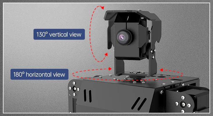 Robotens huvud är utrustat med en HD-kamera med 120° vidvinkel som använder OpenCV-baserad bildanalys.