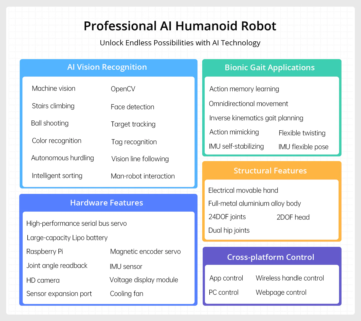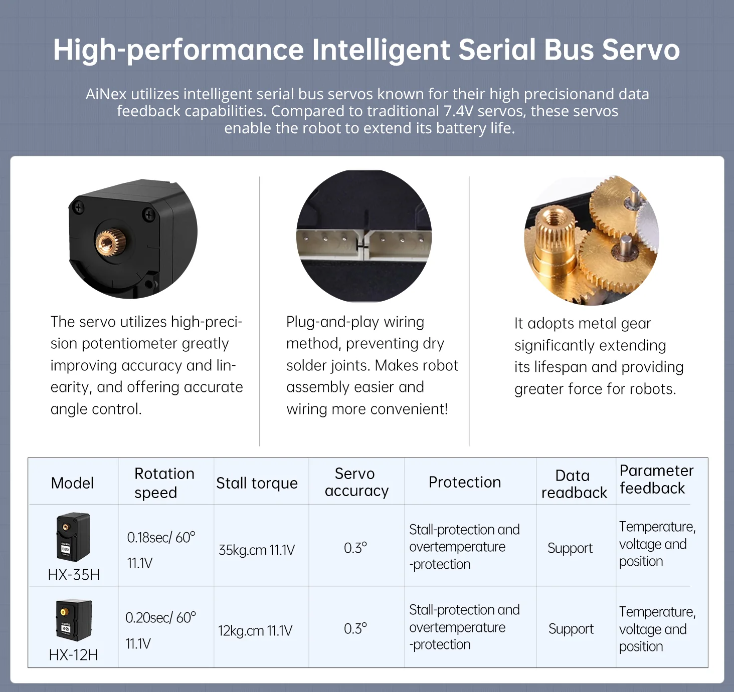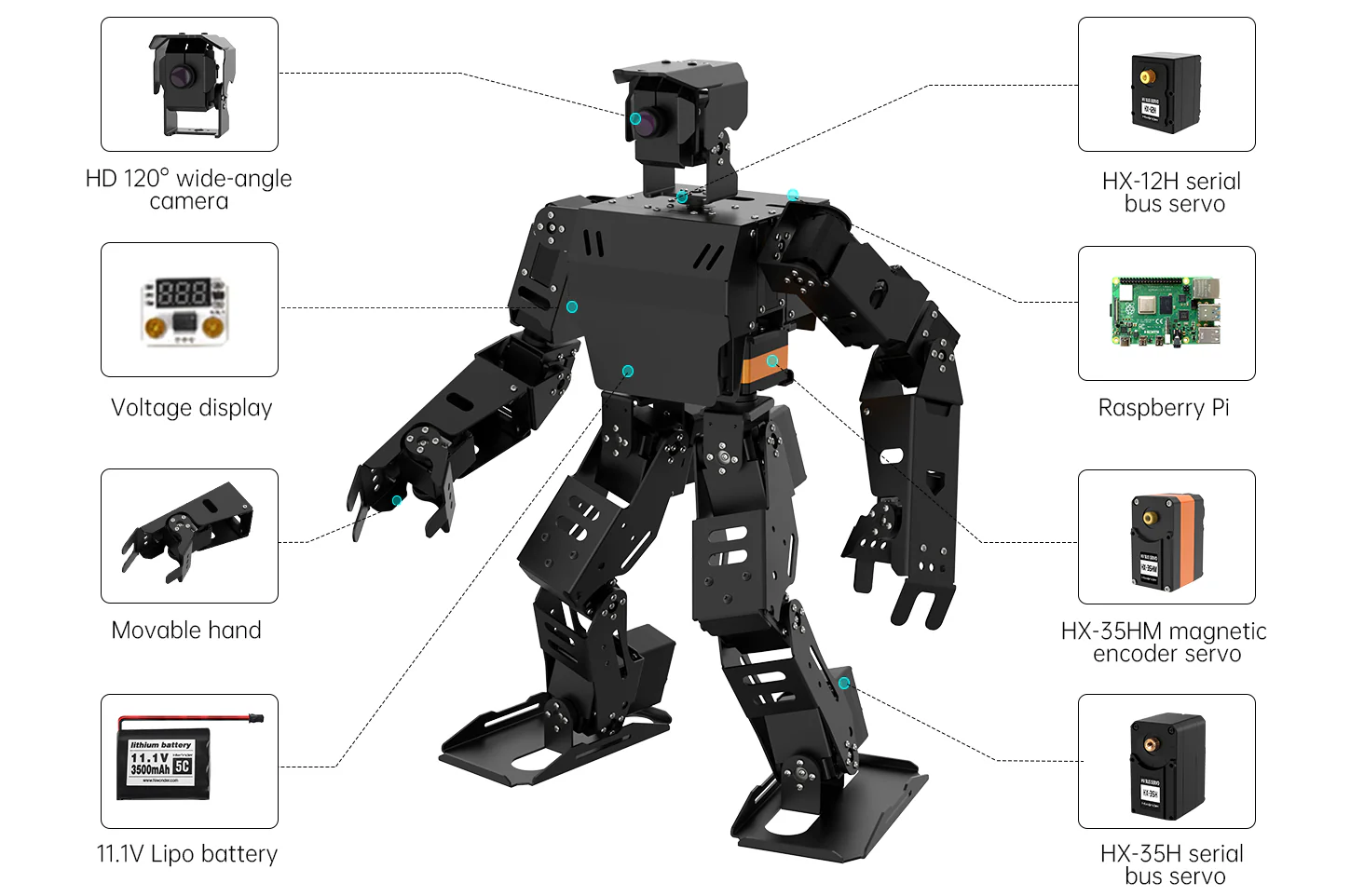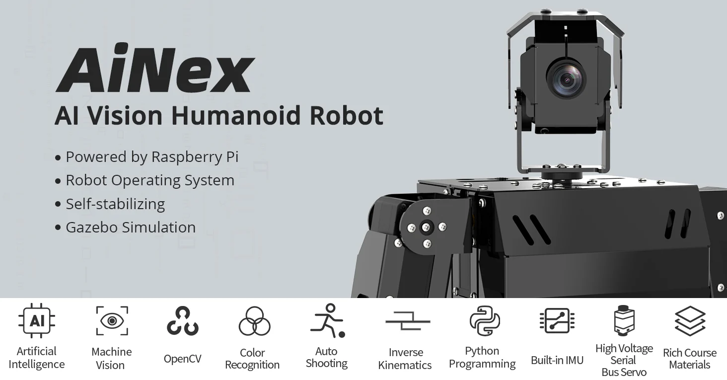 AiNex är utrustad med kraftfulla komponenter som gör roboten både flexibel och avancerad.