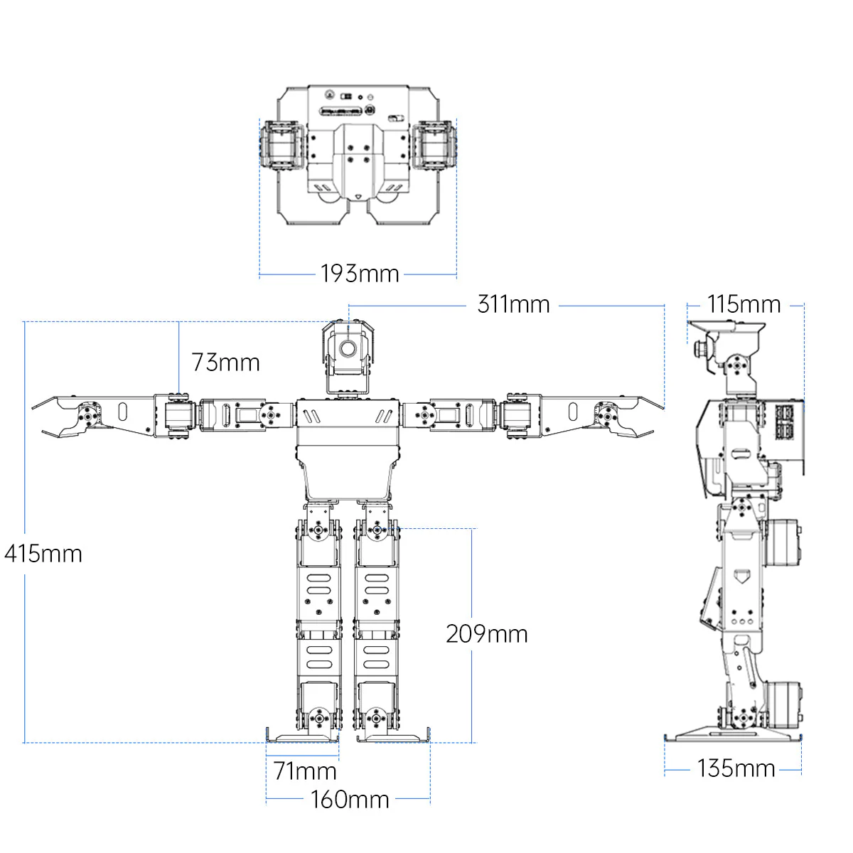 AiNex är byggd i aluminiumlegering och har 24 rörelseaxlar som ger mycket stor rörelsefrihet.