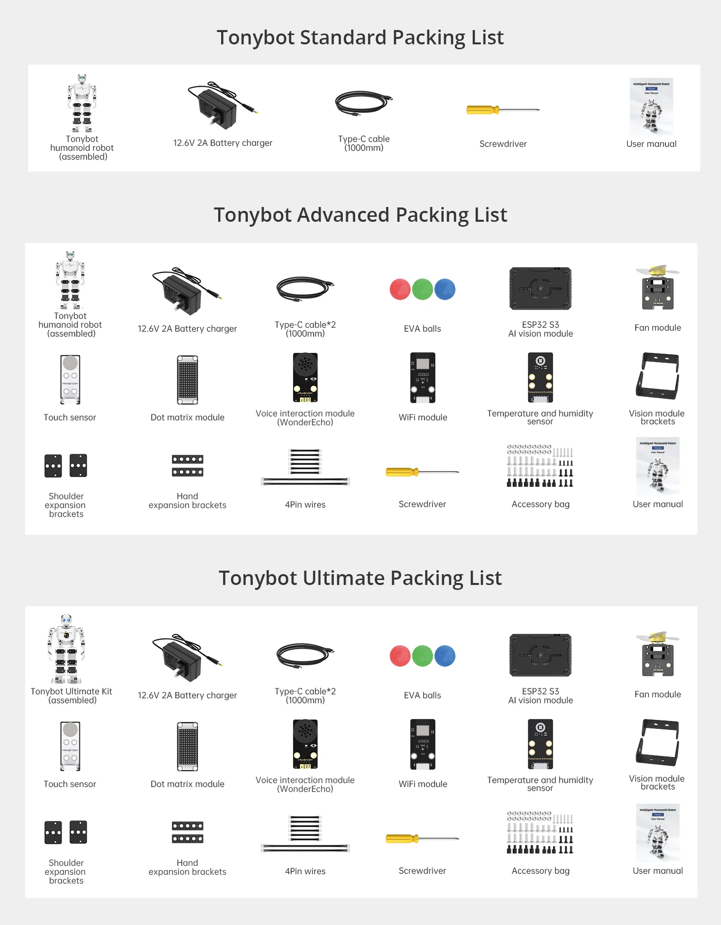 Tonybot kan utökas med många olika sensorer och moduler, till exempel: