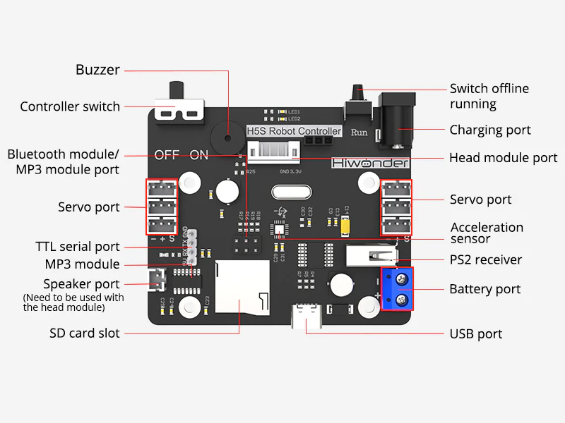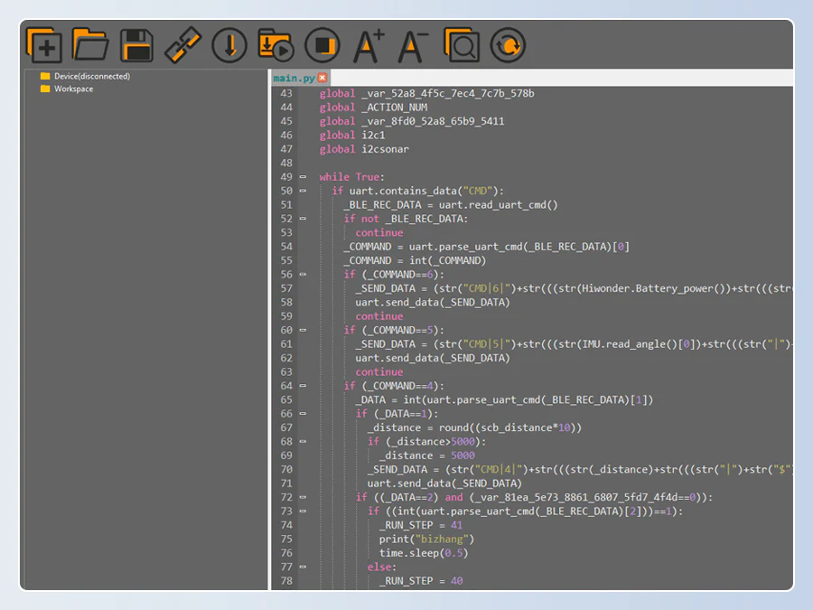 Ger full kontroll över robotens hårdvara och sensorer.