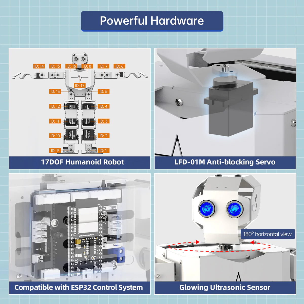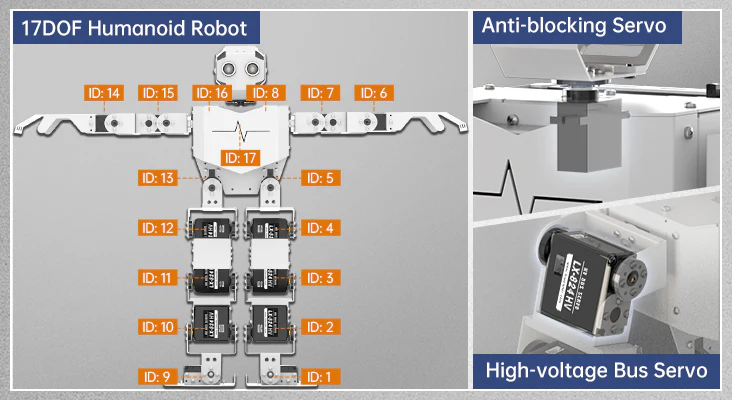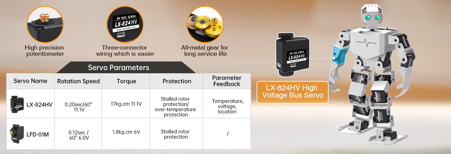 De intelligenta buss-servomotorerna ger exakt kontroll och mjuka rörelser.