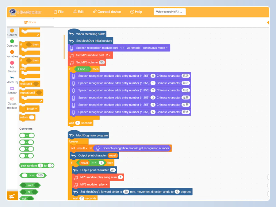 utföra olika rörelser efter röstinstruktioner